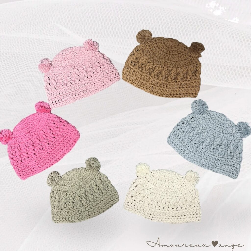 新生児からかぶれる安心素材の手編み帽子?キッズアクセサリーやヘアアクセサリーなど可愛いがたくさん詰まったお店です