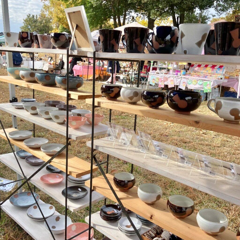 奈良で陶作活動をしている『こめがま』です。普段は『ネコ水玉シリーズ』を主に制作していますが、はにコット限定で『前方後円墳シリーズ』がメインとなります。