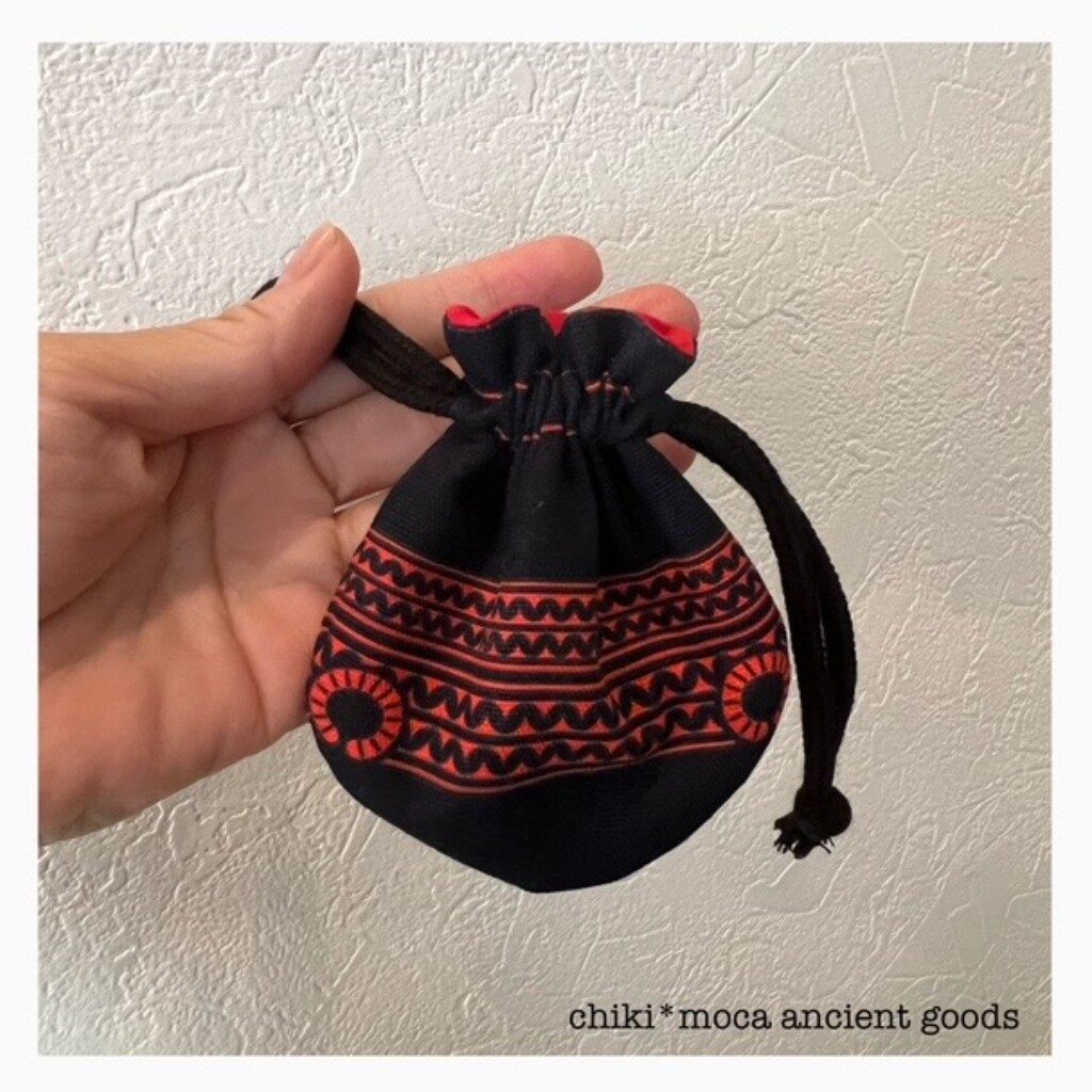 こんなにカラフルで素敵な土器が、はるか昔に使われていたことを沢山な方に知ってもらいたくて、布を作り巾着に仕立てました。
