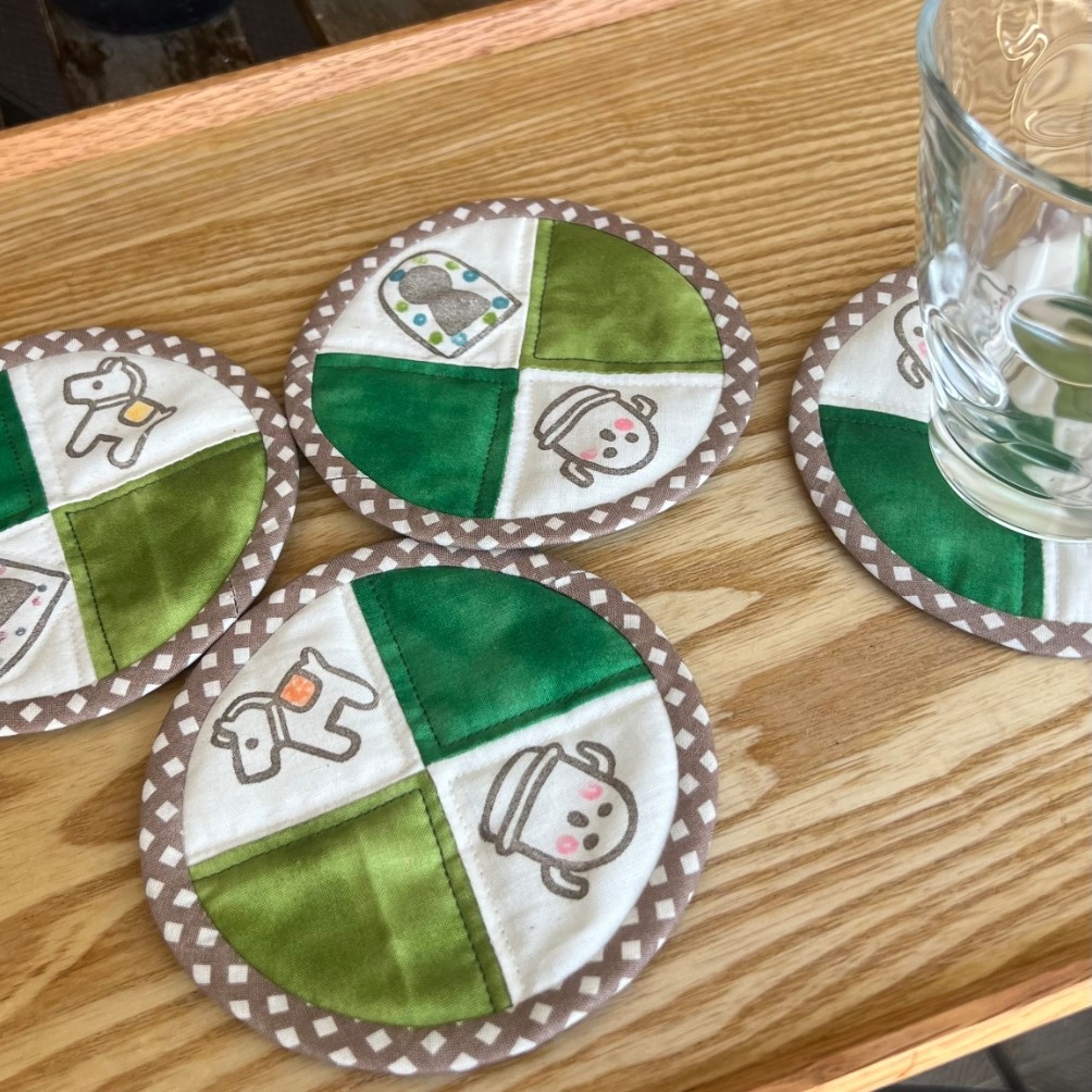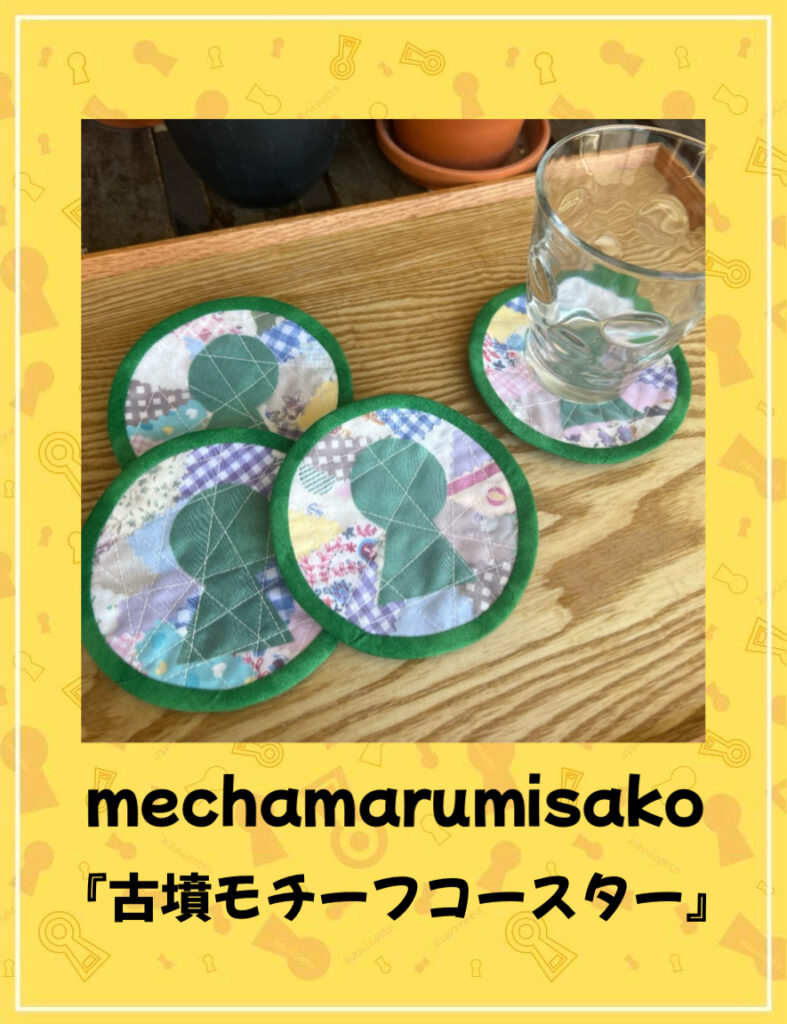今回はクレイジーキルト風な感じで古墳のイメージでコースターを作りました