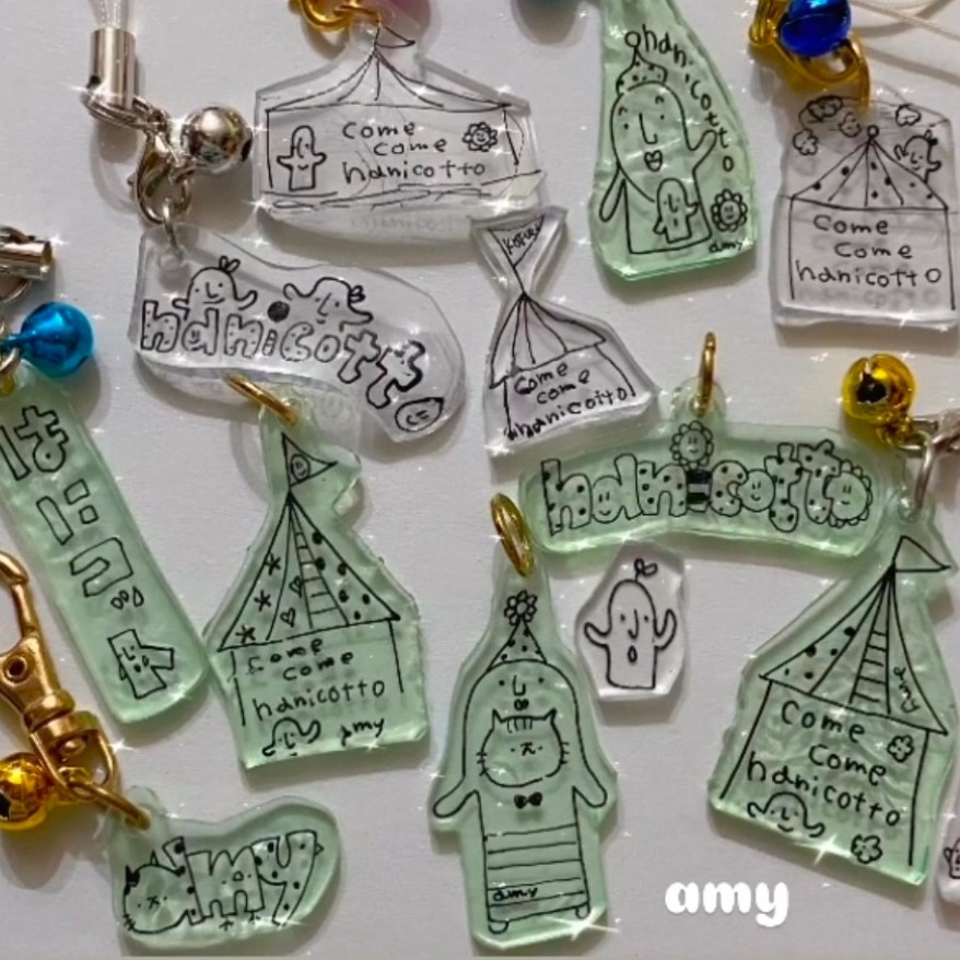 オリジナルキャラクターを羊毛フェルトでブローチやキーホルダーにしたりひとつひとつ手描きで布やbagにお絵描き編み小物にリメイク雑貨などになります