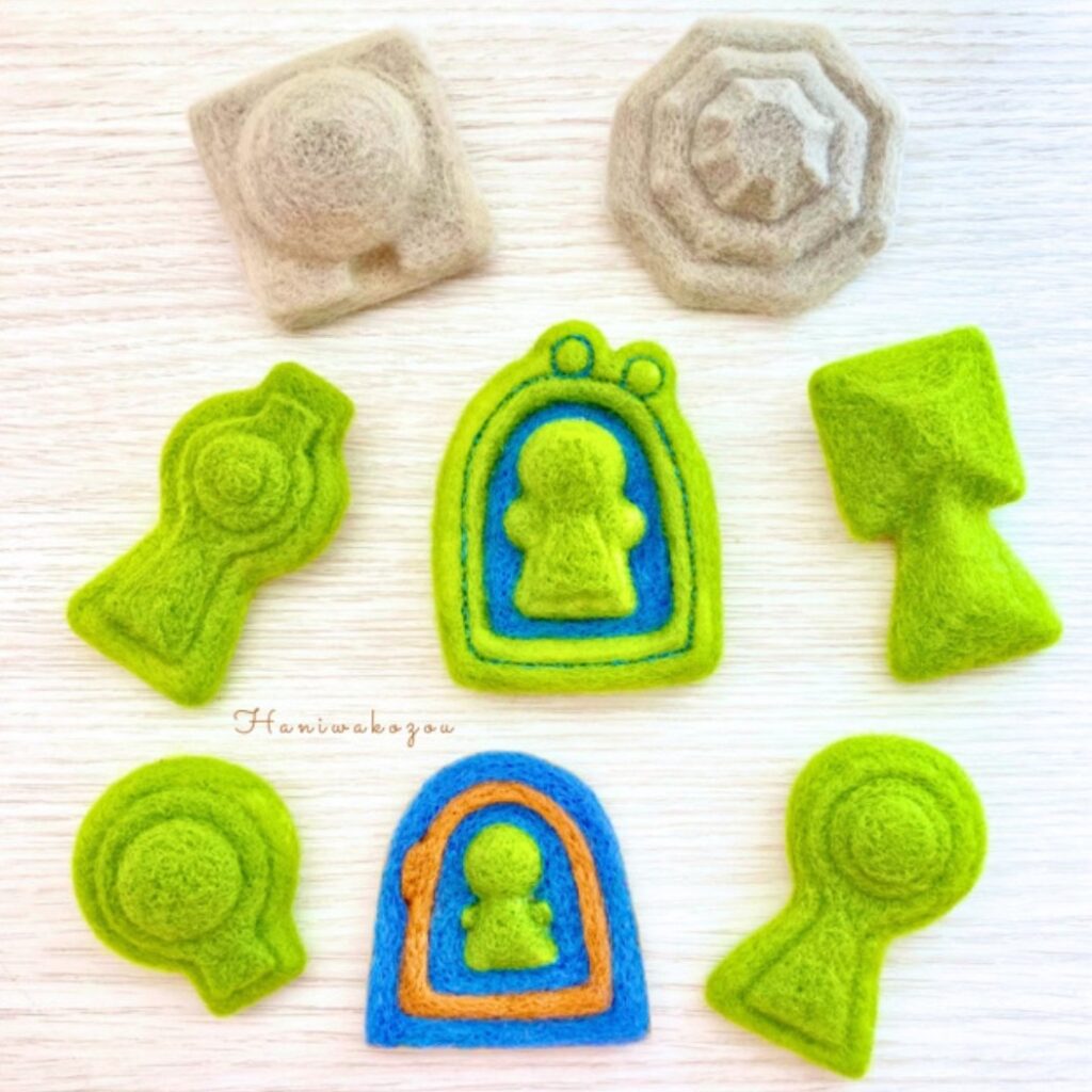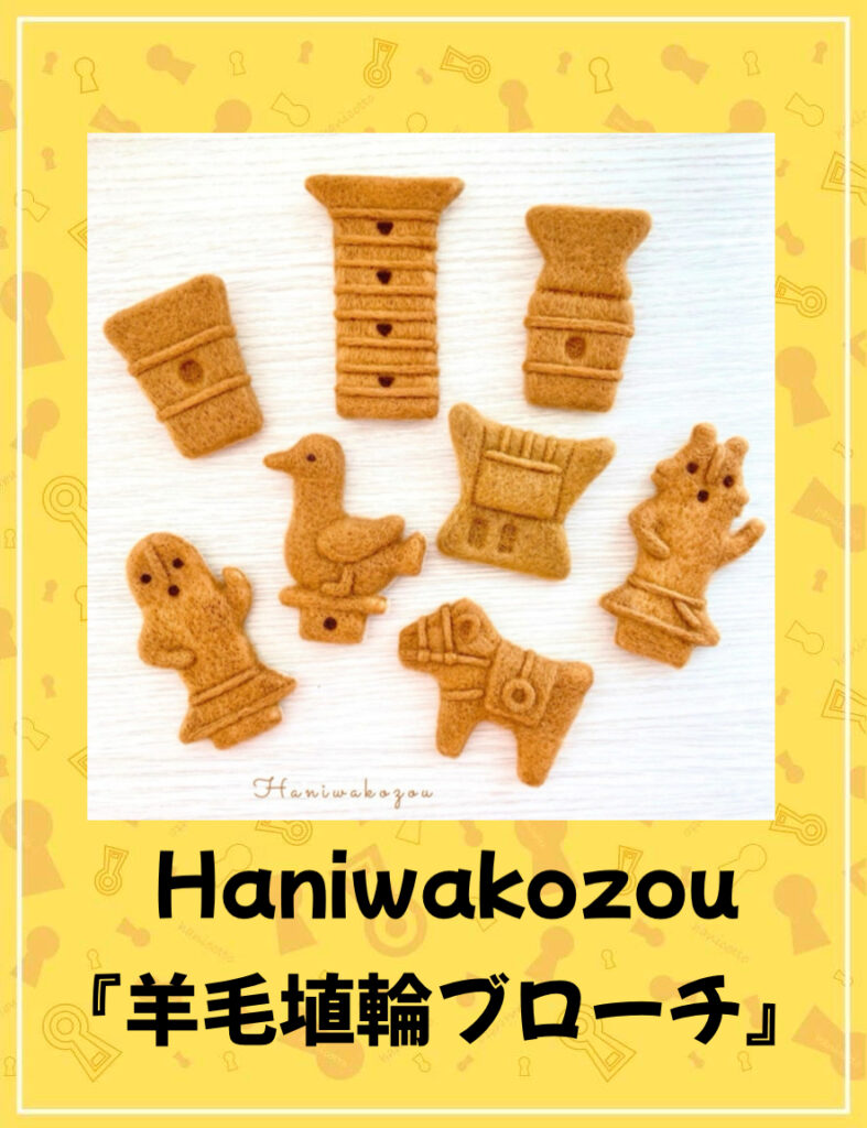 羊毛フェルトの埴輪や古墳のブローチなど。