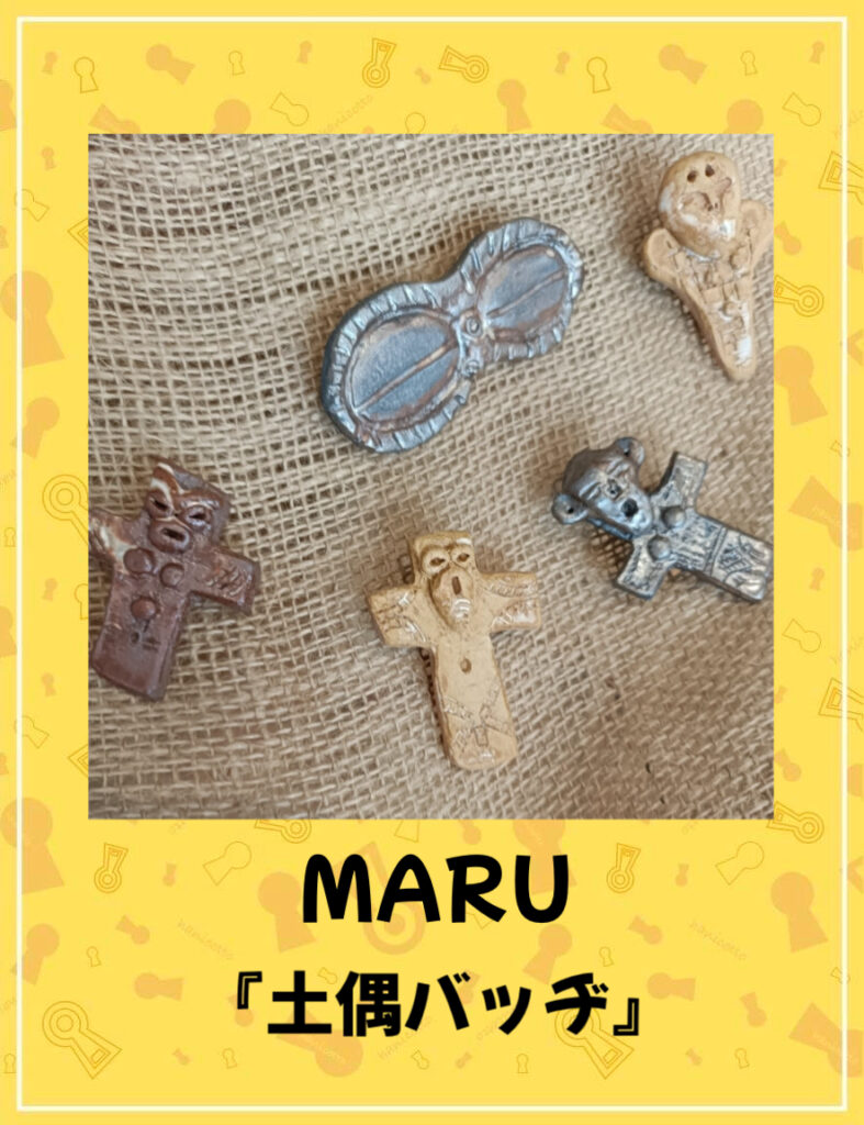 その他、土偶バッヂや埴輪マグネット等の陶芸小物を販売します。