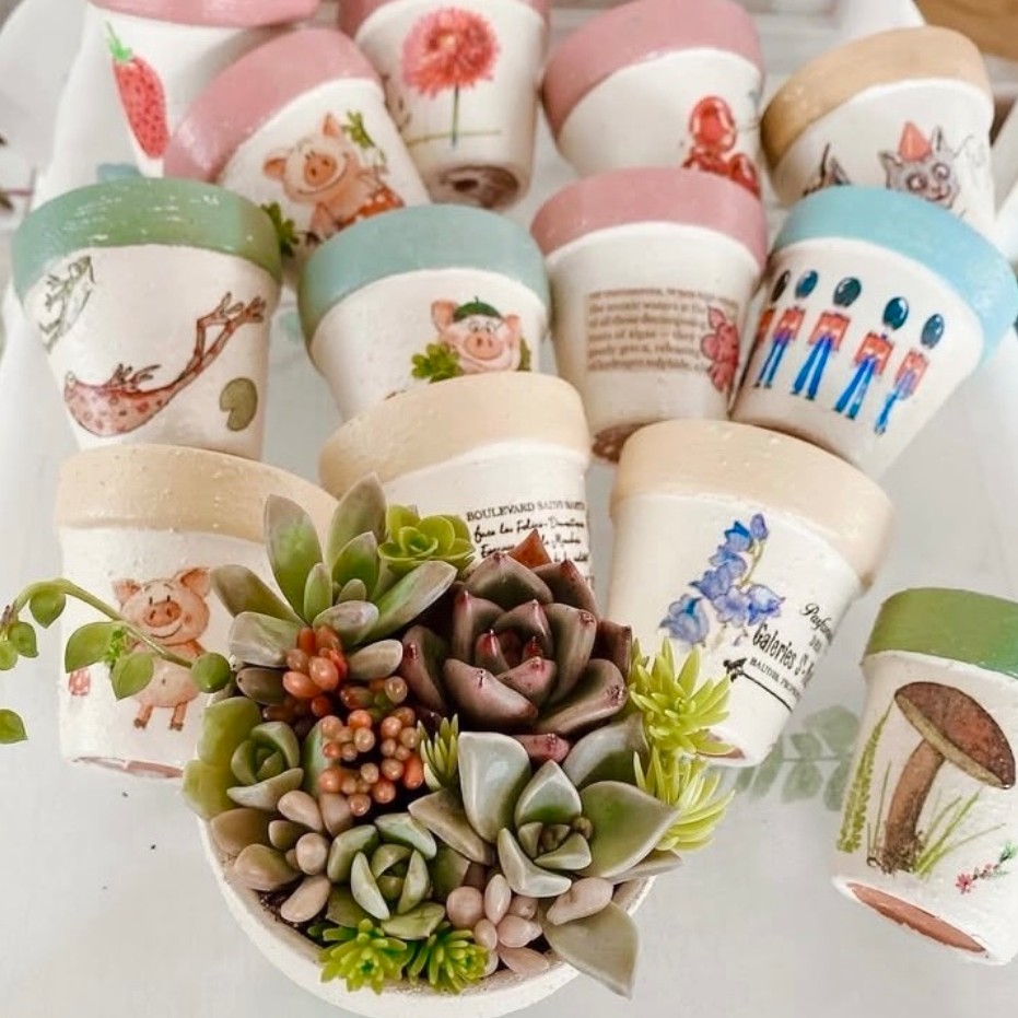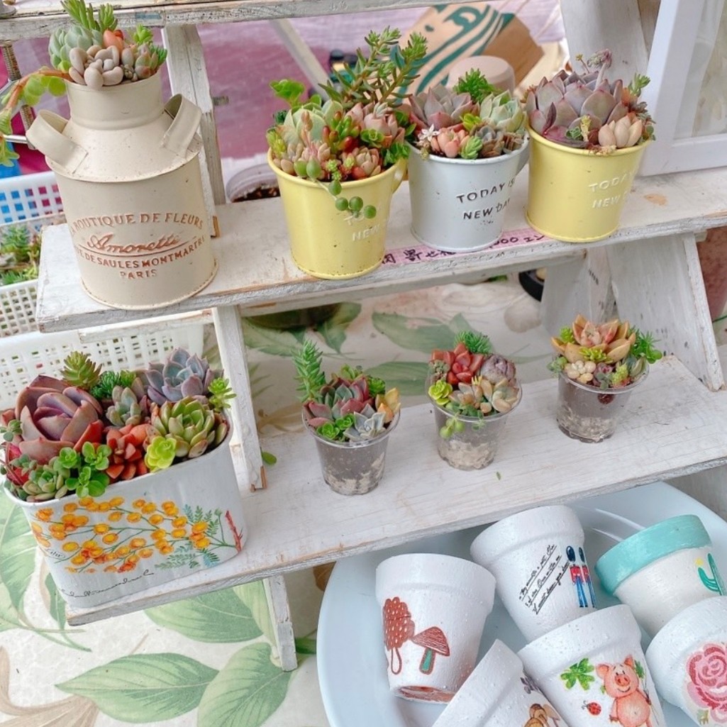 自宅で育てた多肉を缶や鉢をリメイクして寄せ植えしています