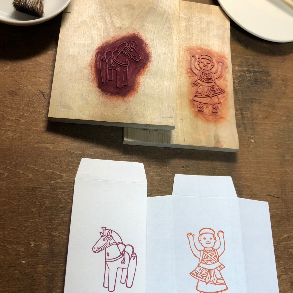 埴輪に愛着を持ち始め、木版画で埴輪の葉書、カード、ハンカチ、Tシャツなど、少しずつ生産中。季節の葉書やカード、浮世絵複製木版画、等の販売。木版画の摺体験のワークショップも開催。
