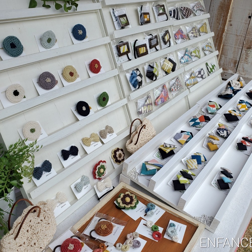 手描きレジンアクセサリー、かぎ針編みアクセサリーや雑貨、編み小物、北欧テイストのヘア小物、キッズヘア小物やキッズアクセサリーなど、親子で楽しめる手作り小物をたくさん揃えています♪