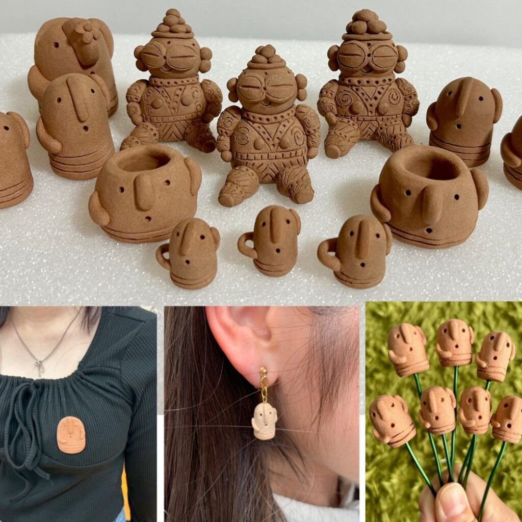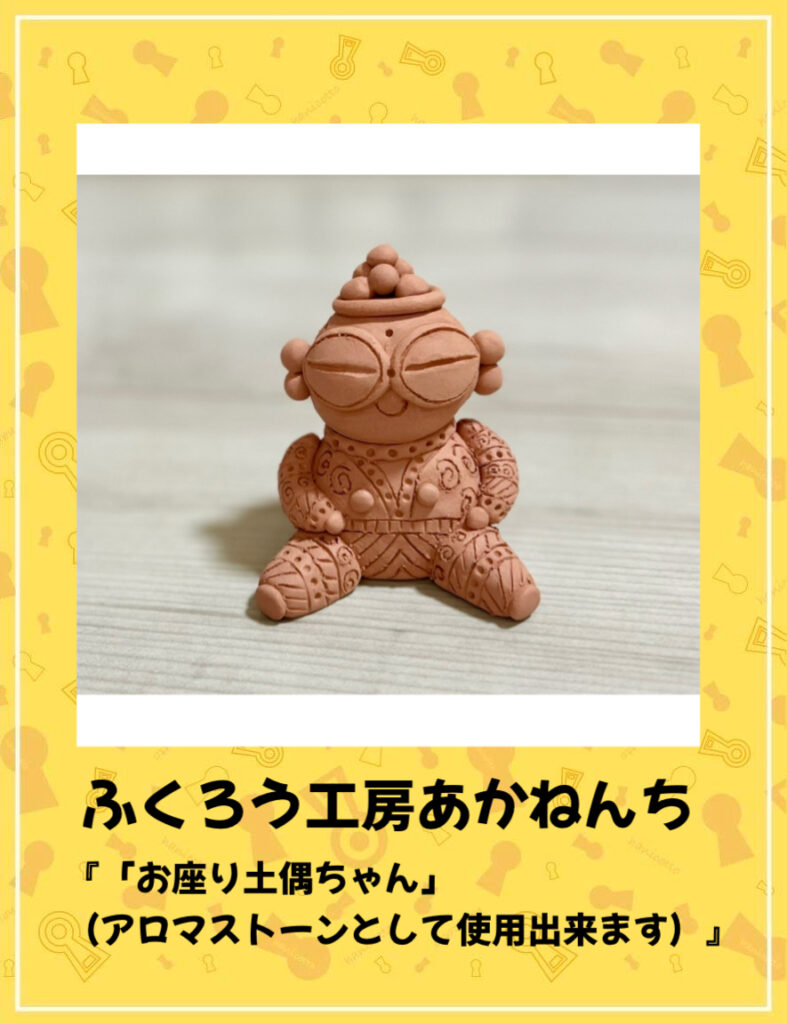 もともとはふくろうモチーフの作品をメインで創っていましたが、はにわ等も好きだったので作ってみたら人気だったので、レパートリーがだいぶ増えました。アロマストーン、お香立て、歯ブラシ立て、風鈴、多肉鉢、ガーデンピック、ピアスイヤリング、ブローチ、ネックレス、などなど、かなりの種類があります。