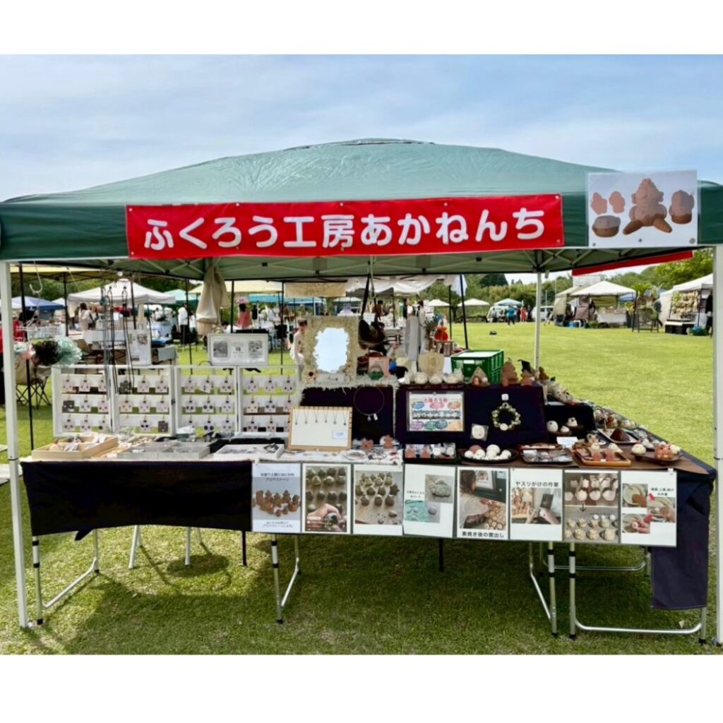 初めまして、鹿児島県霧島市から来ました。普段は鹿児島県、宮崎県のハンドメイドマルシェに出店しています。大阪出店は初となります。自宅にある陶芸用電気窯で焼き上げた、手作りの陶芸作品を販売します。古墳、はにわ、土偶モチーフの少し変わった陶芸作品が色々あります。ぜひ手に取って見て頂きたいです☆宜しくお願いいたします。