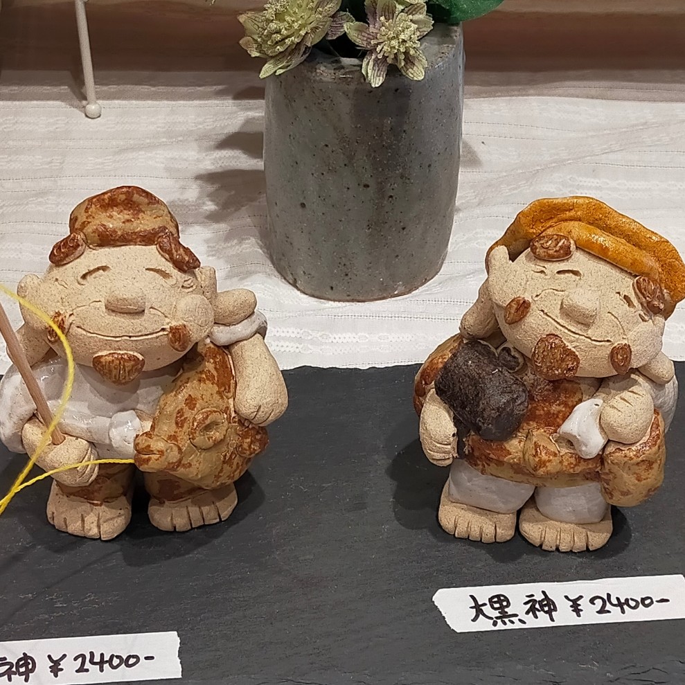 ご飯茶碗お湯呑マグカップ、古墳アイテムのカップも制作しています恵比寿様大黒様の陶人形も展示販売します