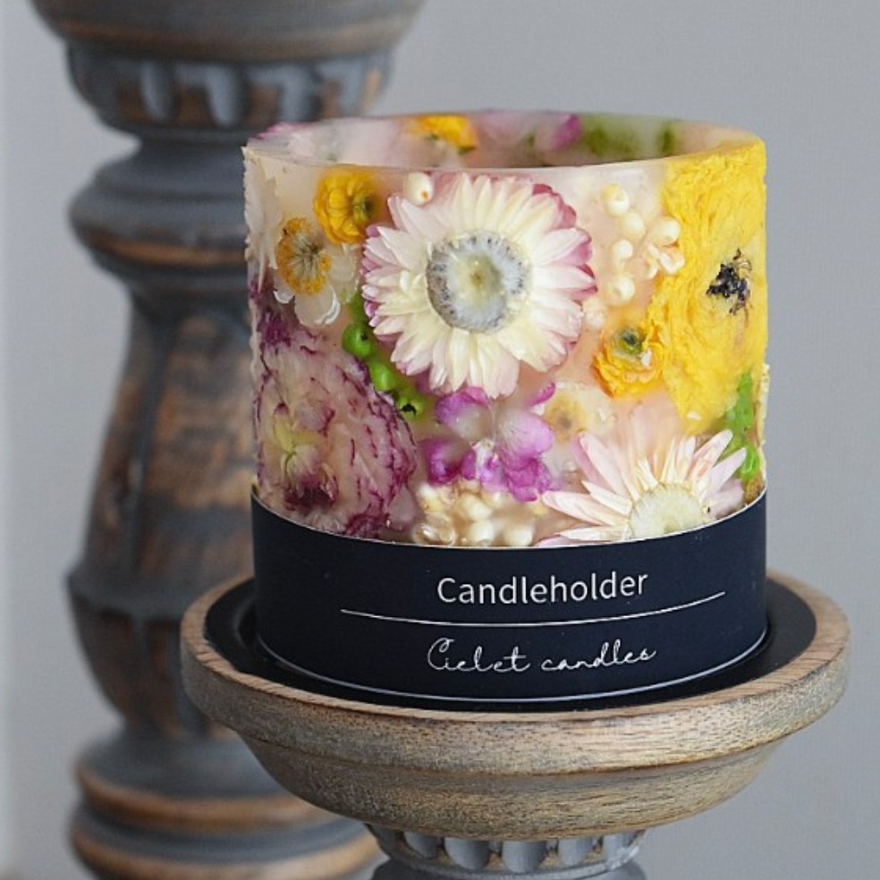 お花を入れたハンドメイドのキャンドルやホルダーの販売。