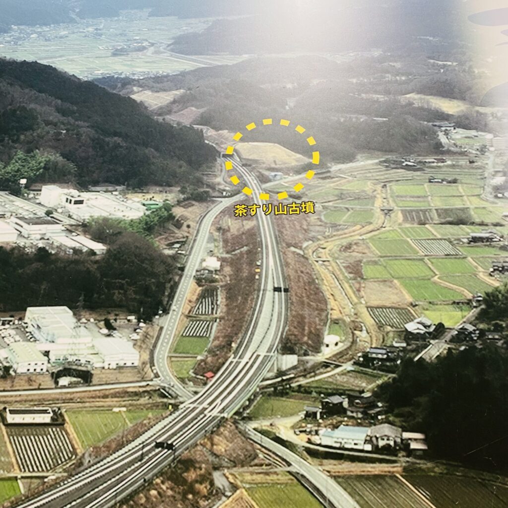 和田山から山東へ抜ける「宝珠峠」の途中、標高約144メートルの尾根の先端に位置する茶すり山古墳は、5世紀前葉の大型円墳です。