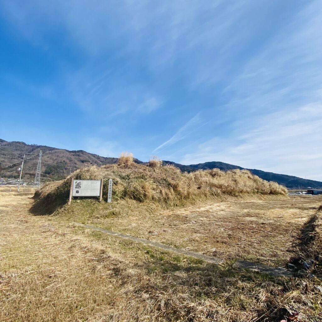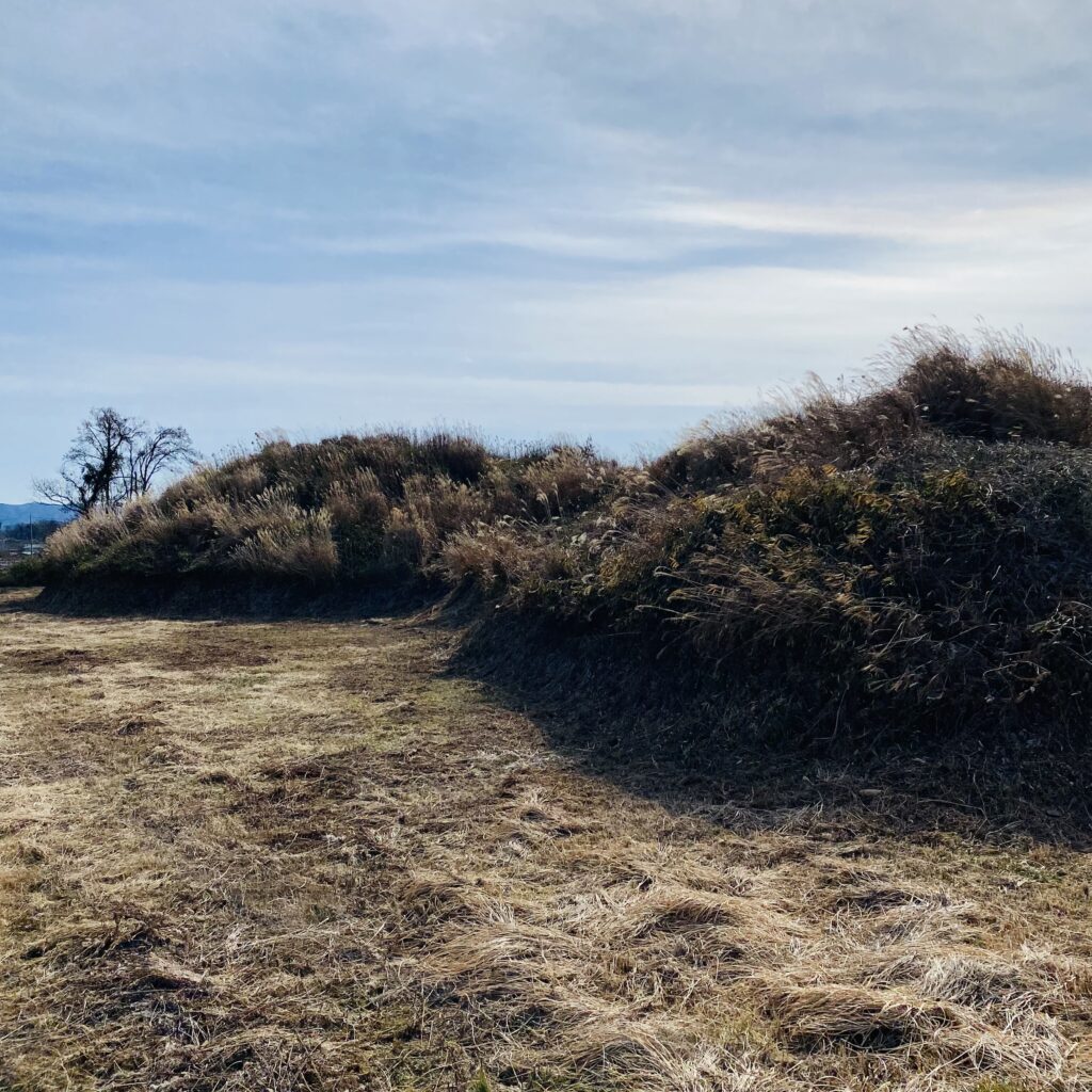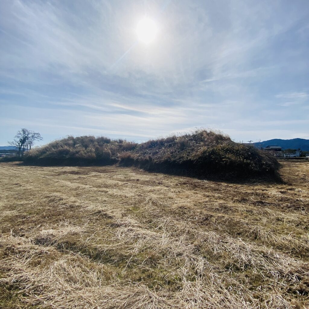 時期的にお休み中の田畑の真ん中に本当にこんもりと丘といった感じで佇んでいたキレイな前方後円墳の形。