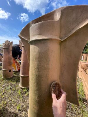 苔や泥で汚れている箇所をゴシゴシ。埴輪の裏側まできれいにしました。