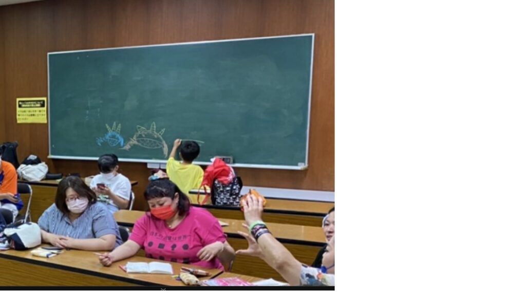 会議中、子供たちは黒板に絵を描いたりしています!