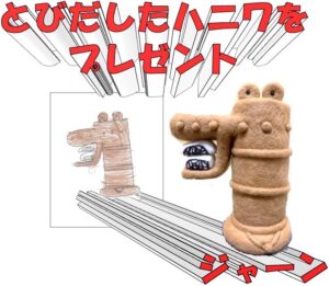 子どもたちが考える「こんなハニワがあったらいいな」のイラストが、造形クリエイターの手でイラストから飛び出し、立体的によみがえります!!