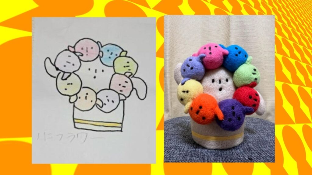 800を上回る作品の中から選ばれた受賞者のみなさんに、絵を立体に再現しプレゼントしました。おめでとうございます! (造形担当:山田羊毛所)