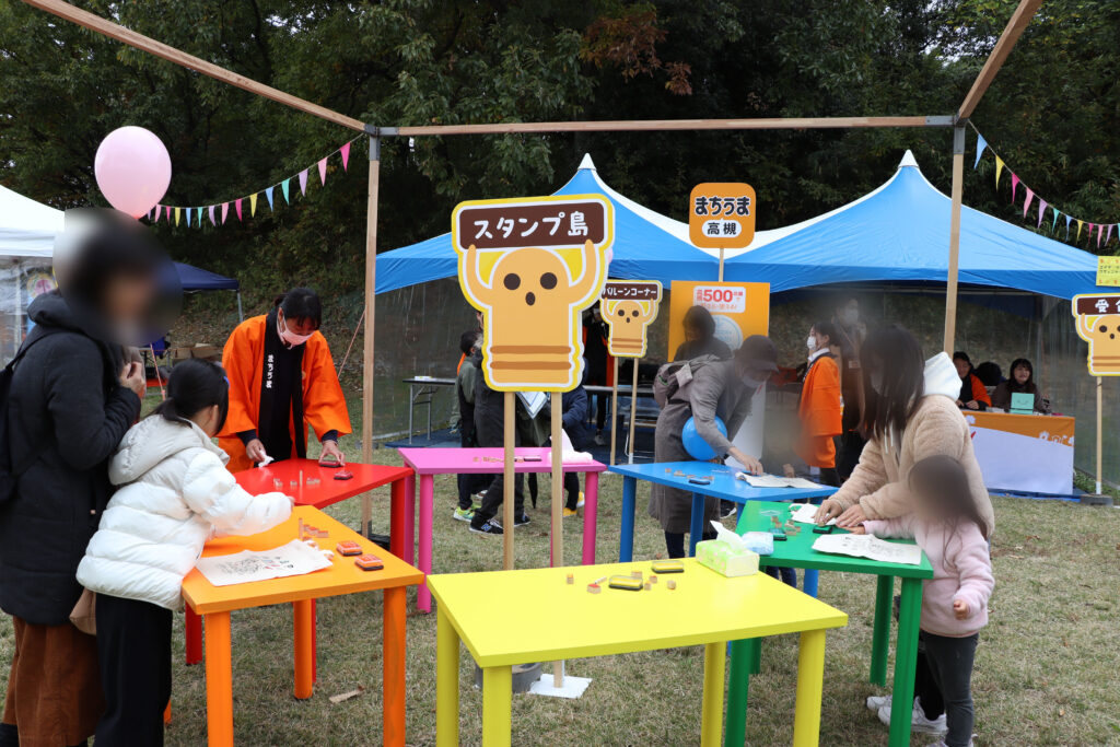 まちうまブースでは、好きな色を塗ったり、スタンプを押して