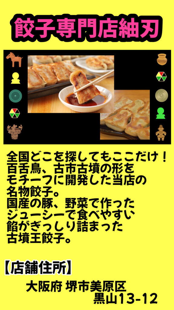 古墳フード餃子専門店紬刃 2025年10月6日2025年10月6日 - by はにコット Instagram リンク はにコット古墳フェスはにコットに関するページです。 毎年11月に今城塚古墳で古墳とアートのイベントを開催しています。 2025年vol.14 15回目の開催です。 来場者40,000人。(コロナ禍でもリモート開催で35,000人の来場者)