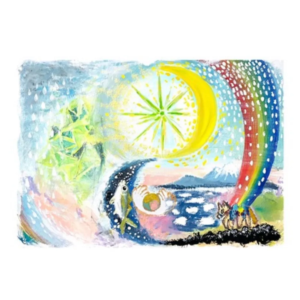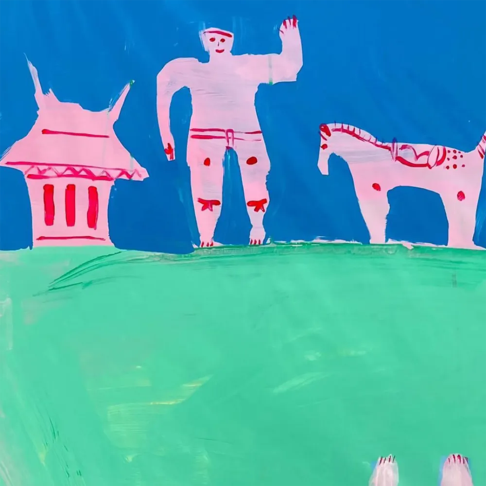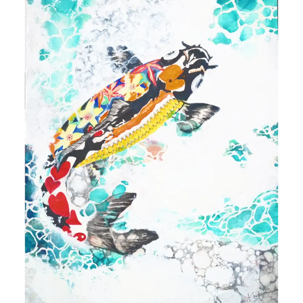 基本的に、自由気ままにインスピレーションで描くスタイルで、アクリル絵の具やポスカなどを使い、明るい色を中心に好んで描いています。