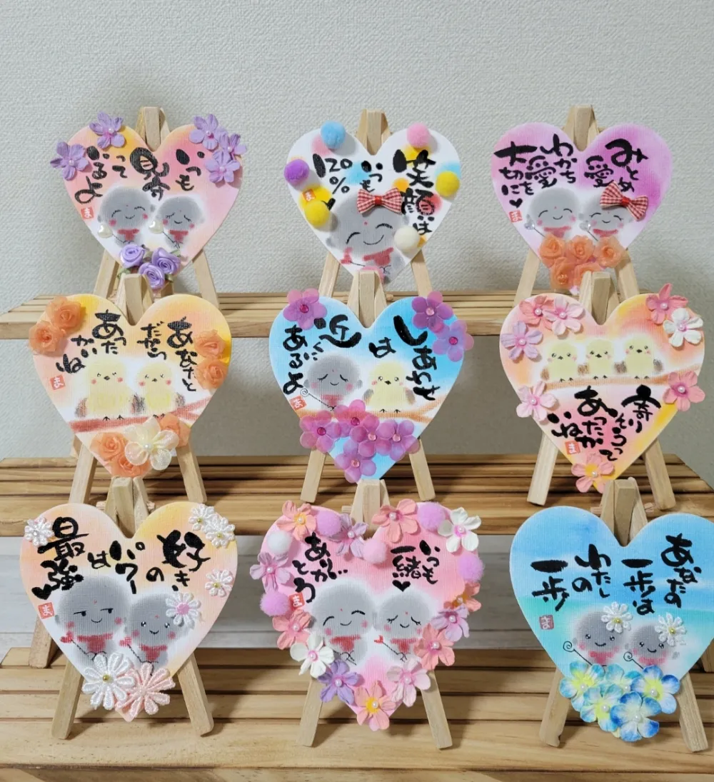 パステルアートと筆文字を通してたくさんの方に笑顔や癒しをお届けできるよう、個展やグループ展を開催、マルシェに参加したり定期的に教室講座やオンライン講座もおこなっています。