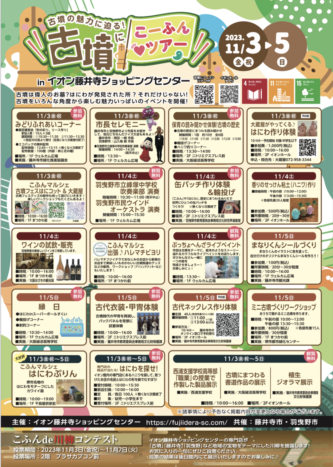 古墳フェスはにコットは、藤井寺市・藤井寺イオン の世界遺産「百舌鳥・古市古墳群」をより知っていただけるよう「古墳に💛コーフンツアー」に出店します。