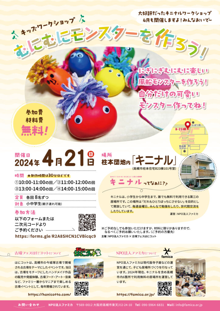 4月も開催しますよ!今回はにぎにぎむにむに楽しい風船モンスターを作ろう!自分だけの可愛いモンスター作ってね