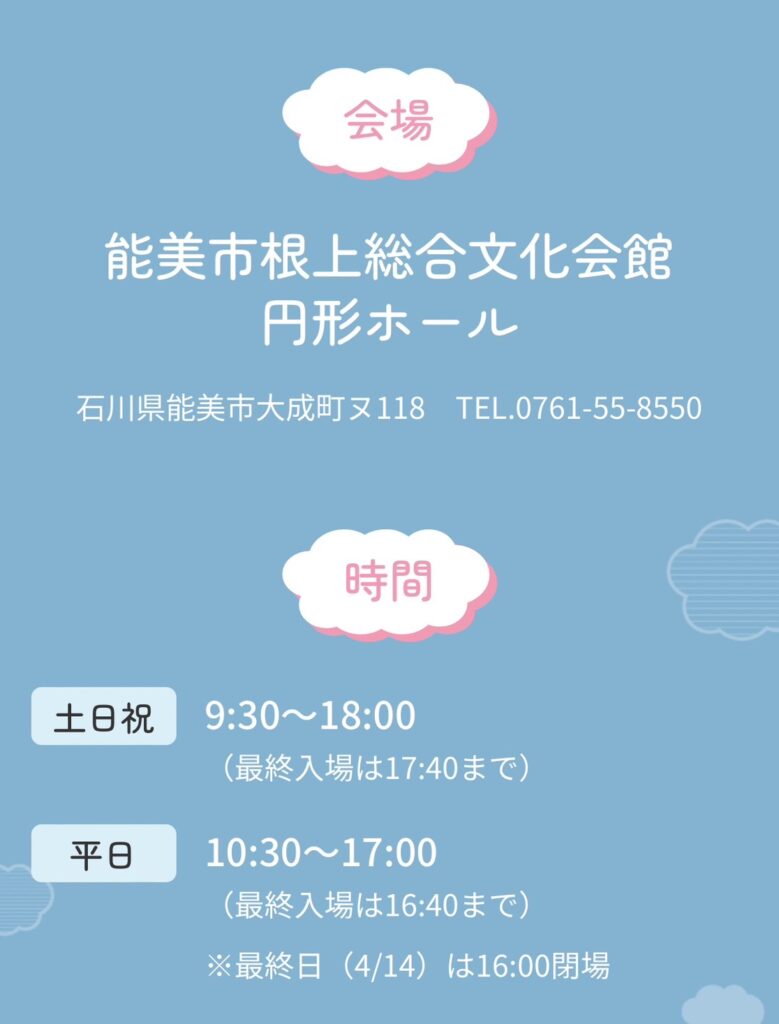 10:30~17:00(入場は16:40まで)、土日祝 9:30~18:00(入場は17:40まで)