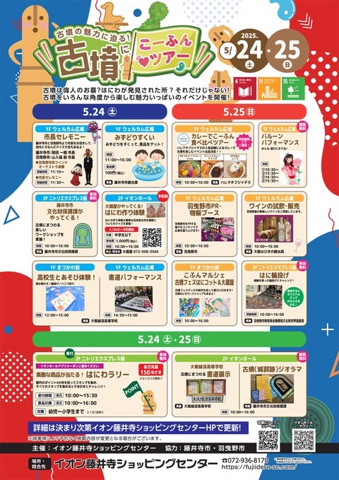 お知らせ / 外部出店ꉂ📢古墳フェス藤井寺イオンイベントに参加します✋ 2025年5月20日2025年5月20日 - by ハゼ墳 イベント詳細 古墳の魅力に迫る!古墳にこーふん ツアー5月24日 (土)・25日 (日)イオン藤井寺ショッピングセンター 古墳は偉人のお墓?はにわが発見された所?それだけじゃない!古墳をいろんな角度から楽しむ魅力いっぱいのイベントを開催! 古墳フェスはにコットも参加…!? 古墳フェスはにコットも5/25に参加させていただきます!○古墳グッズ販売○古墳✕サンリオキャラクターズグッズ○はにわ古墳みくじつり 是非みんなあそびにきてほしいよ~! イベント詳細ページは【こちら】 ハゼ墳