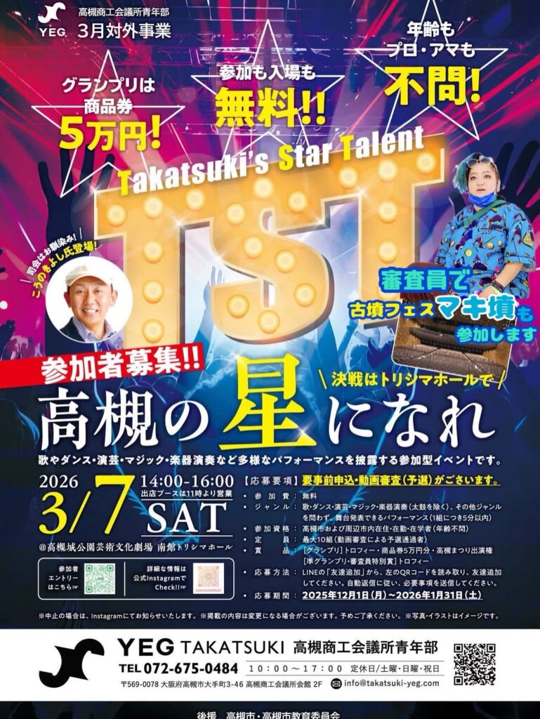 高槻商工会議所青年部が主催する「高槻スタータレント」が3月7日(土)にトリシマホールで開催されます!