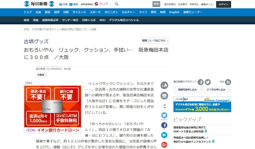 毎日新聞Web うめだ阪急『古墳・はにわフェス』をニュースにしていただきました。