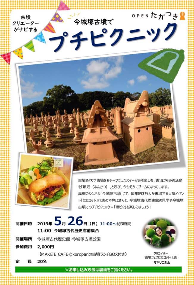 古墳めぐりや古墳をモチーフにしたスイーツ等を楽しむ、古墳がらみの活動を「墳活(ふんかつ)」と呼び、今ひそかにブームになっている。高槻のシンボル今城塚古墳にて、毎年約3万人が来場する人気イベント「はにコット」代表のマキリエさんと、今城塚古代歴史館の見学や今城塚古墳でのプチピクニック=「墳ピク」を楽しもう! お昼はMAKE E CAFE@koropanの古墳ランチBOXをみんなでいただきます!