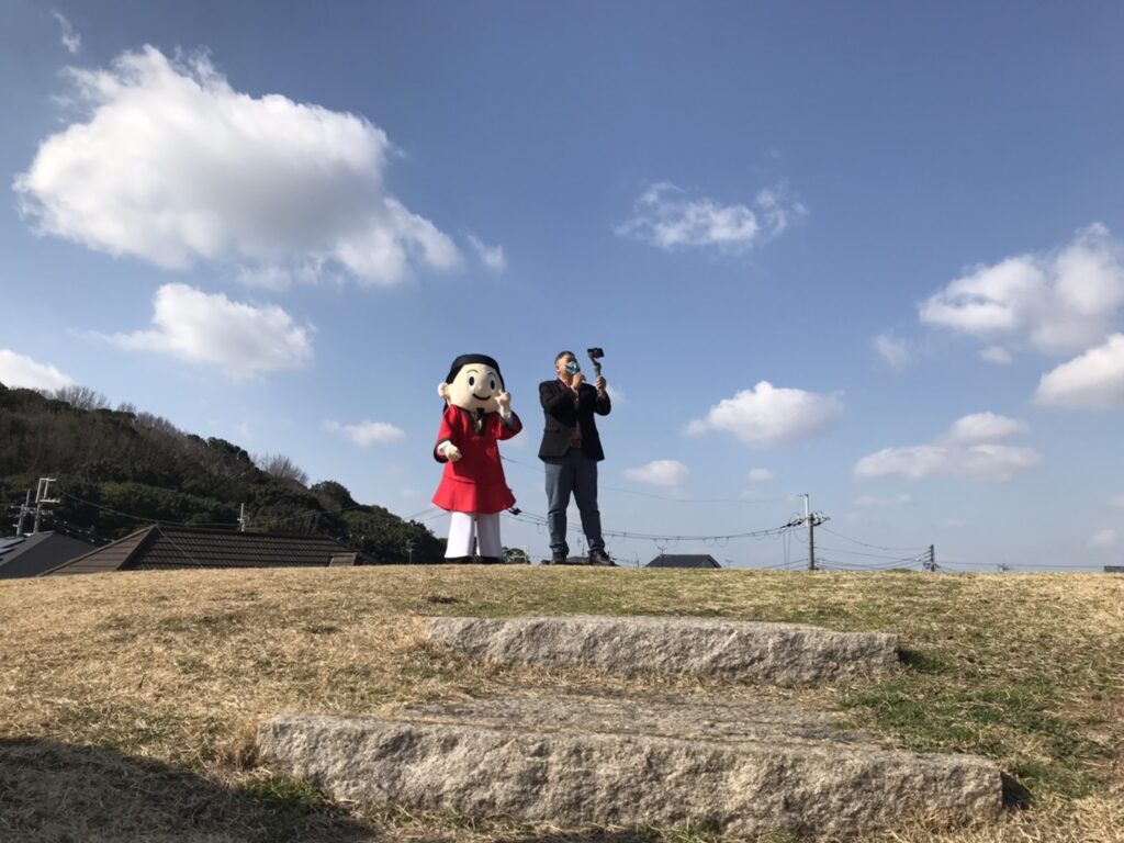 特別ゲストの藤井寺市長さんとまなりくん!鍋塚古墳から中継で推し墳やええとこをたくさん教えてもらいました。