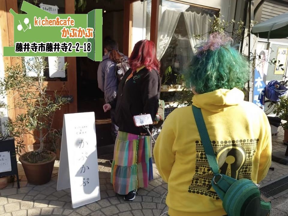 葛井寺(ふじいでら)の南門前で営む本格イタリアンカフェで古墳グッズも扱っているお店です。この日も、たくさんのお客様でにぎわっていました!お店の外にもおいしそうな匂いが。おなかすいた~(食いしん坊のスタッ墳)