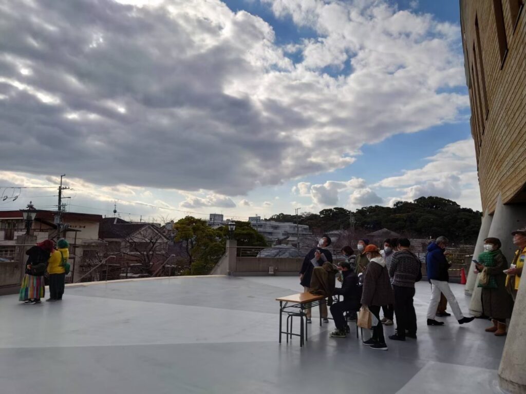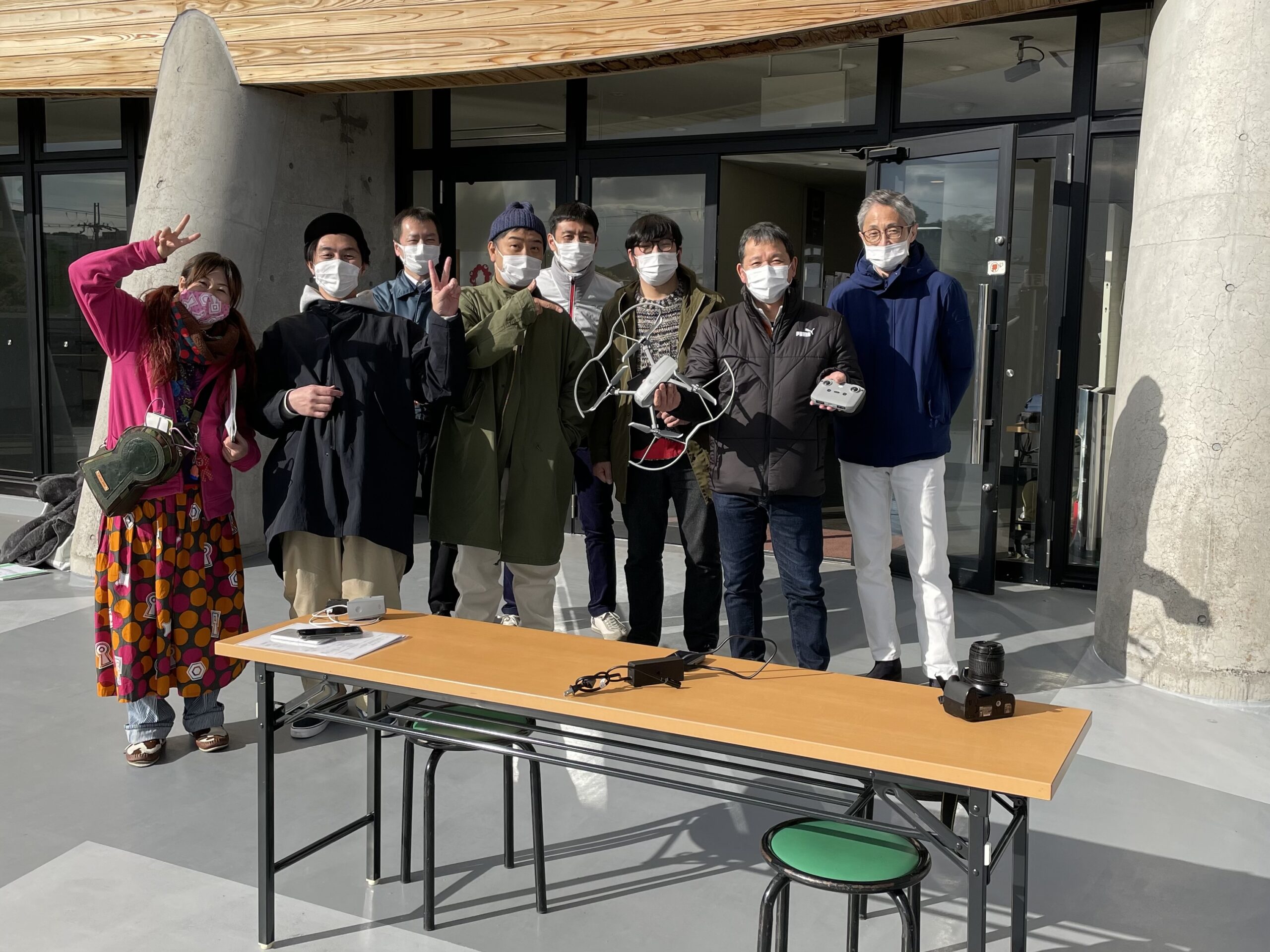 『ブイーンブーンー』と音が聞こえる。「上やうえ!!」ドローンに大興奮のマキ墳ミカ墳。上空から見下ろすシュラホール、360度藤井寺の景色、LIVE配信ならでは。リスナーさんも同タイミングで一緒に見れたね!