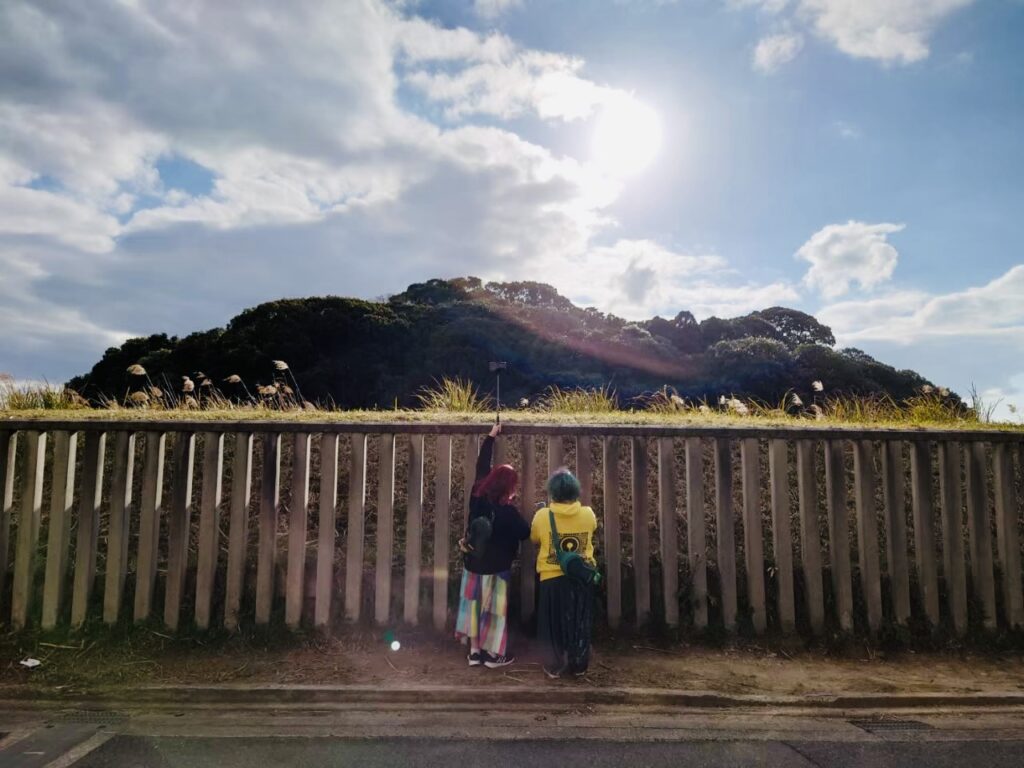 みんなに’仲哀さん’と親しまれている古墳。雲の切れ間から太陽も現れて古墳を照らしていました!