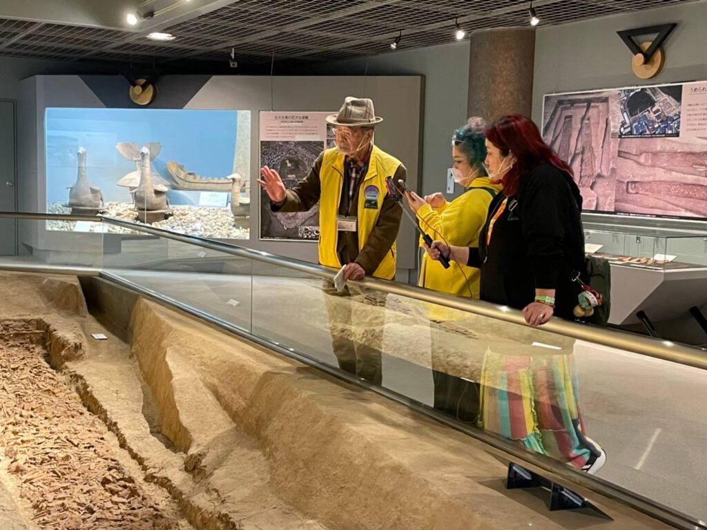 展示室では、昔の棺レプリカや水鳥埴輪を近くで触れ、また、マキ墳ミカ墳と同じ年齢(40歳)で食事できないように抜歯していたことに衝撃!!