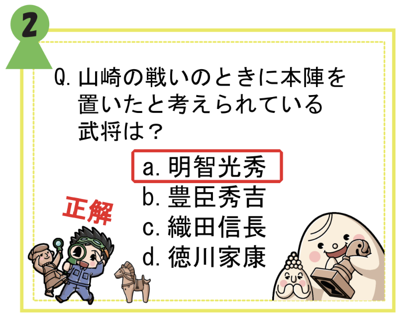 2回目となる長岡京市では、ちょっとシャイなナビゲーター「うーやん」といつも明るいMC「マキ墳・ミカ墳」で古墳×戦国合戦のええところ・ええもんをご紹介します。光秀最後の戦いの地 “恵解山古墳”と娘・ガラシャ新婚の城“勝龍寺城”なども出てきますよ!