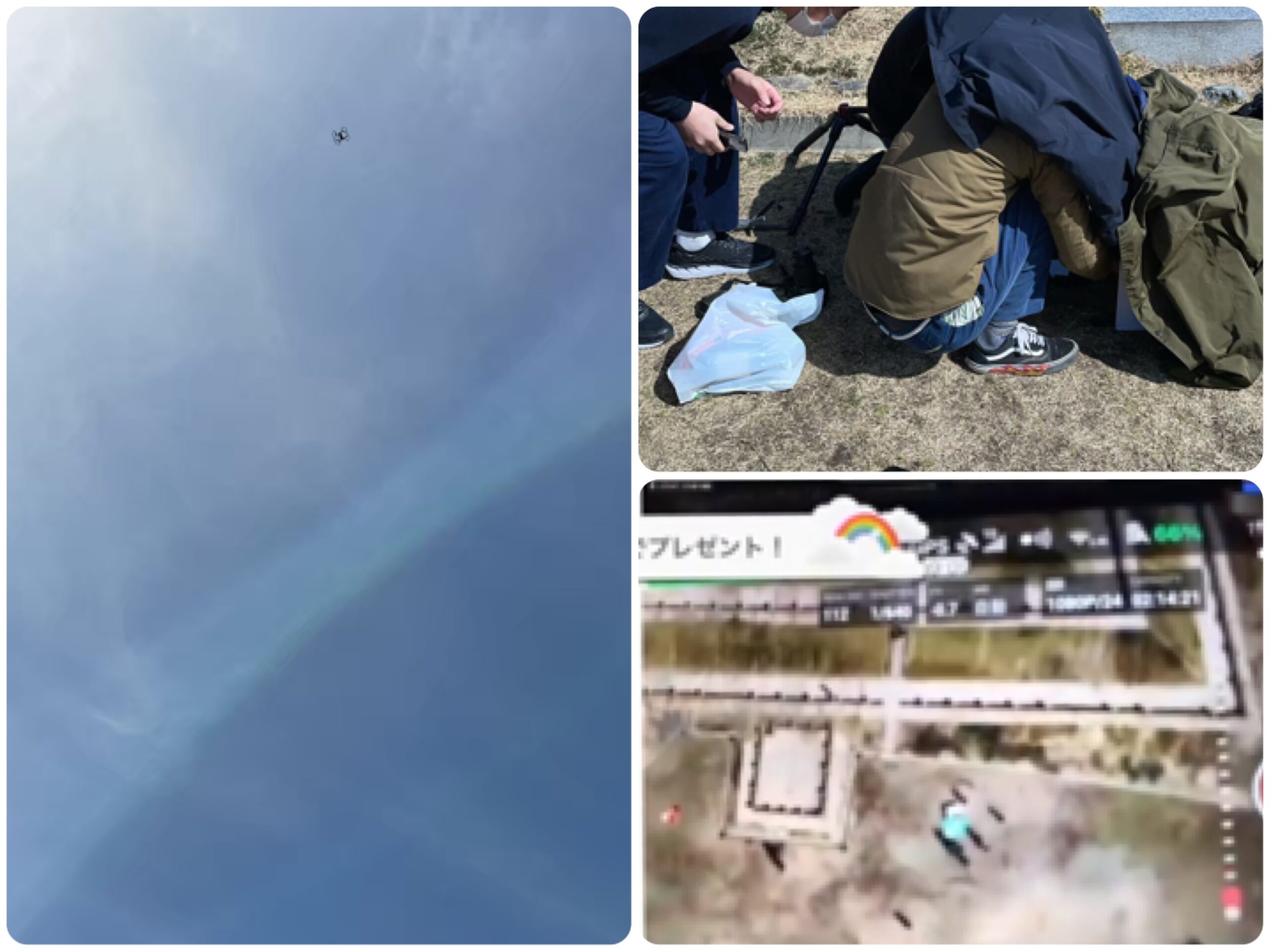 上空から恵解山古墳の映像を少しだけお届け、スタッフも皆に素敵な風景を見せたくて頑張りましたが(強風のため中止)