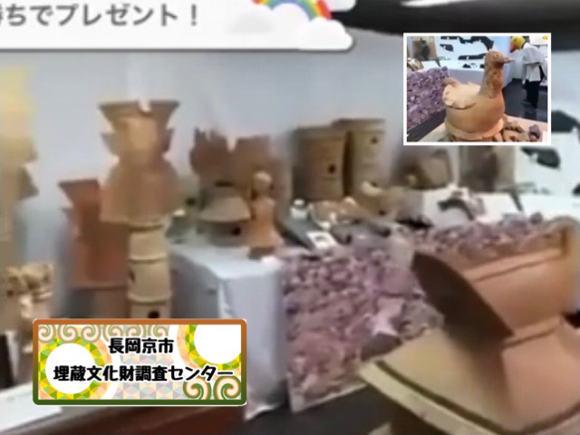 ここでは、長岡京市内で出土した旧石器時代から江戸時代までの貴重な遺物を展示しており、教育委員会の「ふっきー」が色々教えてくださいました。
