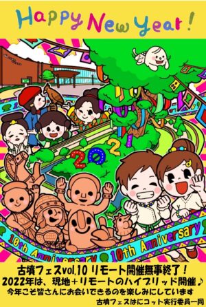お知らせ謹賀新年 2022年1月1日2022年1月2日 - by はにコット 明けましておめでとうございます。 2022年今年もよろしくお願い申し上げます。 今年も古墳を発信して保存していくべく 前に進んでいきたいと思います! はにコット古墳フェスはにコットに関するページです。 毎年11月に今城塚古墳で古墳とアートのイベントを開催しています。 2025年vol.14 15回目の開催です。 来場者40,000人。(コロナ禍でもリモート開催で35,000人の来場者)